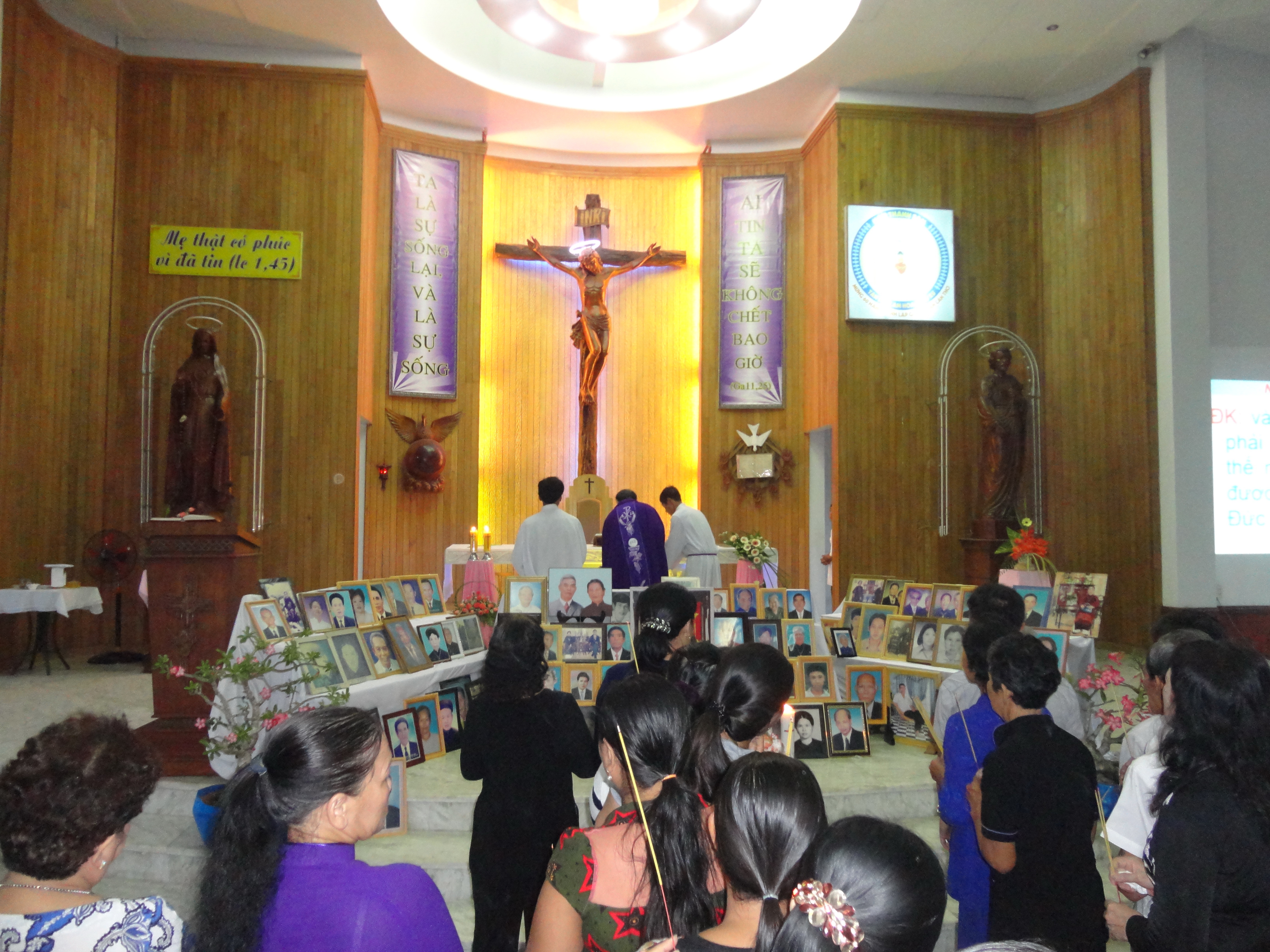 – Linh mục chủ tế, các đại diện và một số vị trọng tuổi (đã được mời và có tập trước) thinh lặng niệm nhang trước bàn thờ Tiên nhân và trước các di ảnh….
