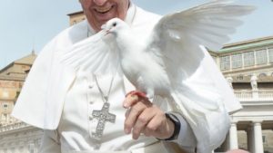 Đức Thánh Cha Phanxicô với các con vật: chiên con, chim bồ câu, chó, báo [...]
