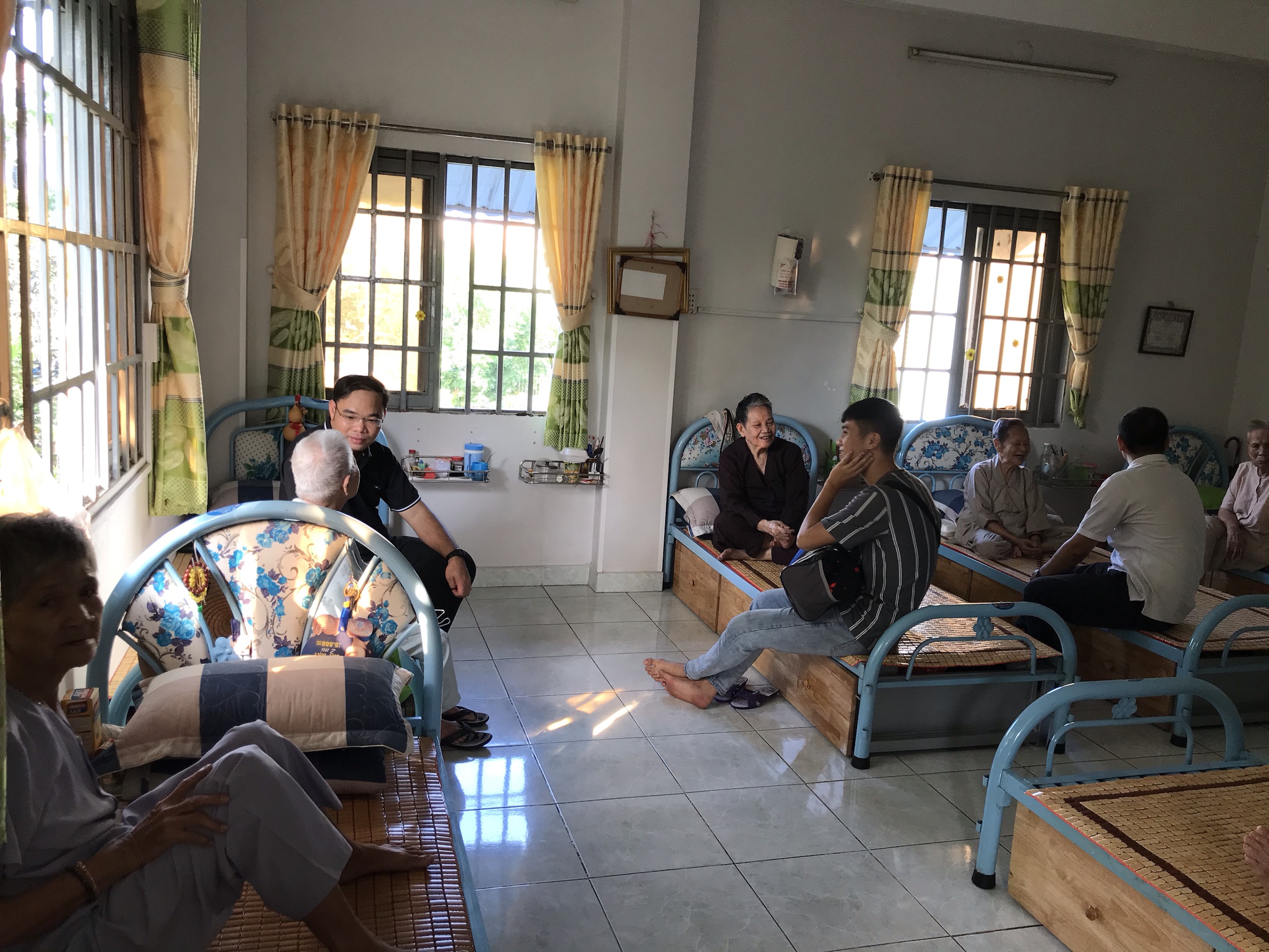Nơi đây có khoảng 40 cụ, là nơi quy tụ các cụ có hoàn cảnh khó khăn, neo đơn đến từ khắp mọi miền của đất nước. Đến đây, chúng tôi cảm nhận được niềm vui từ chính các cụ, dù mỗi người đều có những hoàn cảnh khó khăn riêng nhưng khi sống với nhau các cụ yêu thương nhau như chị em. Hình ảnh các cụ cũng gợi cho chúng tôi nhớ đến hình ảnh ông bà của mình và cũng gợi cho chúng tôi nhìn đến hình ảnh trong tương lai. Khi ngồi nói chuyện với các cụ, anh em chúng tôi được nghe các cụ kể về gia đình, những ký ức tuổi trẻ, buồn có, vui có, khi đang tự hào kể về con cái hay những công việc thời trẻ như vậy, đang vui như vậy, các cụ lại quay ra khóc được ngay. Lúc này, chúng tôi lại phải dỗ dành các cụ như một đứa trẻ vậy. Hoặc có cụ hơi lẫn một chút rất thích hát, nhưng sau mỗi bài hát phải cho một gói cà phê mới chịu hát. Chúng tôi nhận thấy niềm vui trên gương mặt các cụ khi có sự hiện diện của chúng tôi. Đến đây, ngoài việc ngồi nghe các cụ kể chuyện, chúng tôi cũng làm một số việc nhỏ như lấy nước uống, cắt móng tay móng chân, đưa các cụ đi vệ sinh hay dắt các cụ đi tập thể dục…