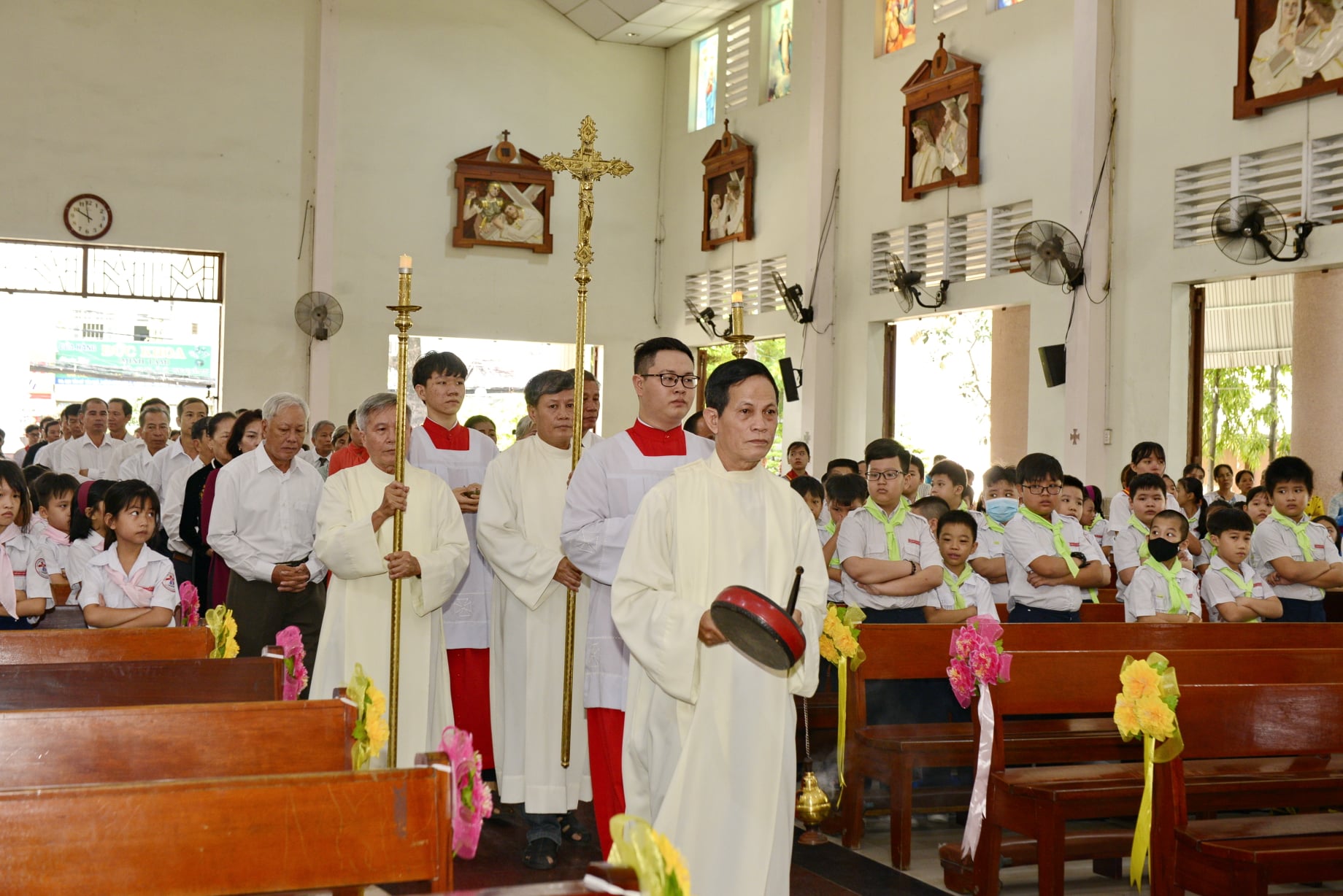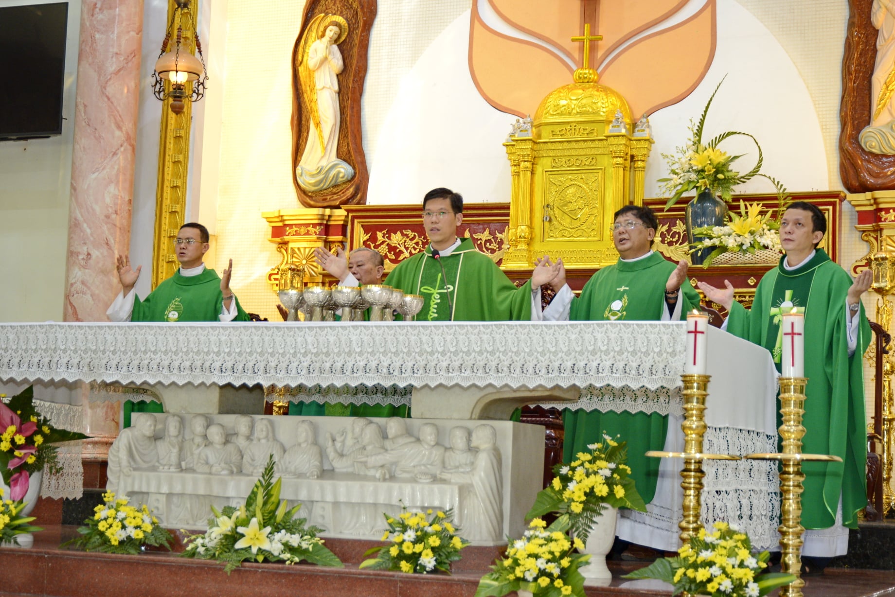 Thánh lễ do tân Lm Giuse chủ tế. Đồng tế với ngài còn có Lm chánh xứ Giuse Trần Văn Lưu, bốn Lm phó xứ và ba Lm Khách: Đaminh K’Brin, Matthêu Phạm Thanh Hoàng dòng Thừa Sai Đức Tin và Lm Giuse Nguyễn Công Hoàn chánh xứ giáo xứ Mẹ Thiên Chúa (GXMTC), Tân Đức, Hàm Tân, tỉnh Bình Thuận.