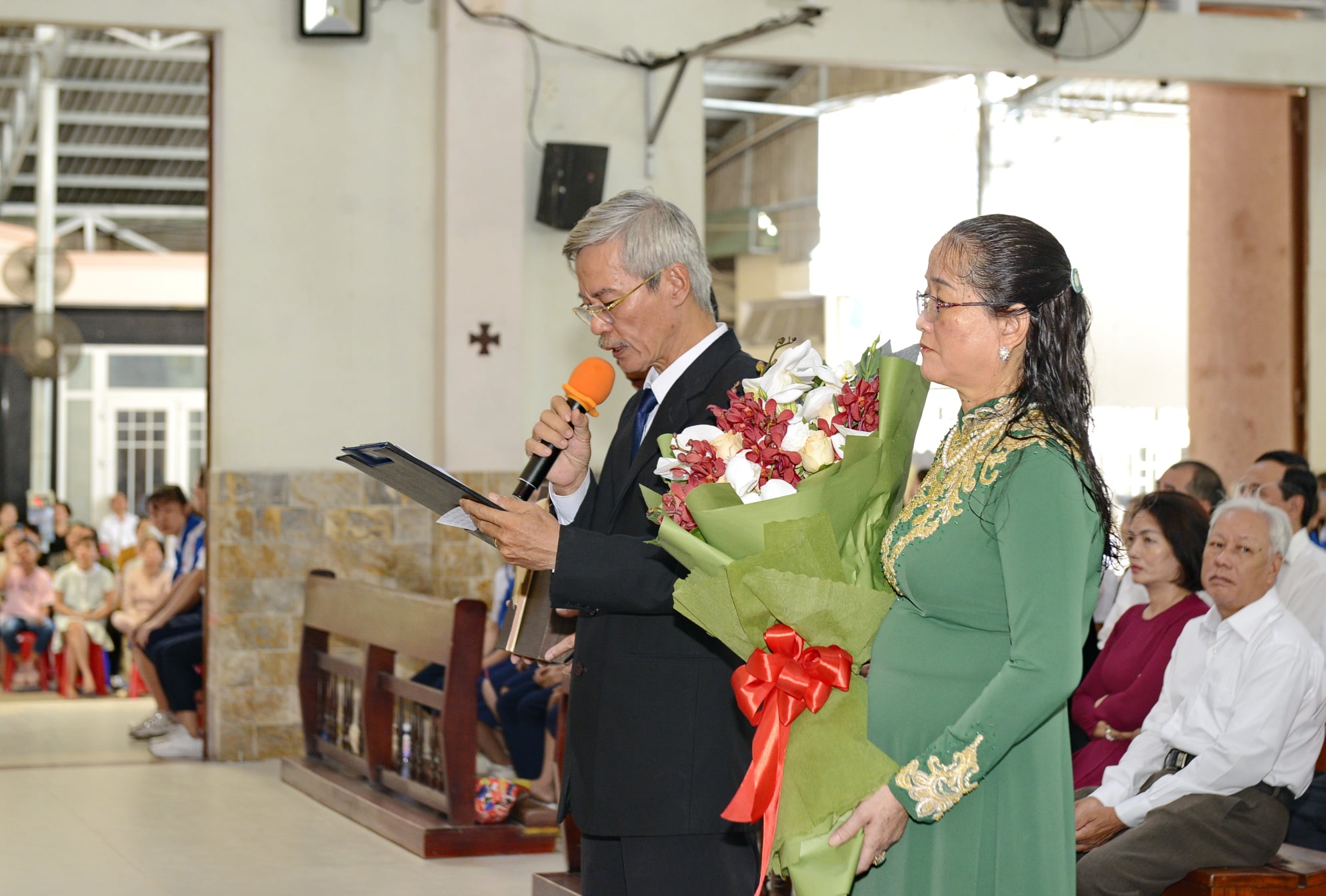 Đến hiệp dâng thánh lễ có quý tu sĩ nam nữ, quý chức trong Hội đồng Mục vụ Giáo Xứ , quý vị khách mời, các em thiếu nhi, gia đình ông bà cố Tân Lm Giuse, và ông bà cố của hai thầy xứ cùng toàn thể cộng đoàn dân Chúa trong Giáo xứ Mân Côi Bình Thuận.