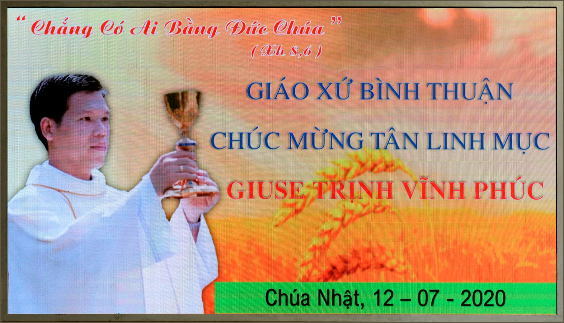 Vào lúc 10 giờ trưa Chúa Nhật ngày 12/7/2020 tại Giáo xứ Mân Côi Bình Thuận – Hạt Tân Sơn Nhì – Tổng Giáo Phận Sài Gòn đã diễn ra Thánh Lễ Tạ Ơn của Tân Linh Mục Giuse Trịnh Vĩnh Phúc (nguyên Phó Tế giúp mục vụ tại Giáo Xứ).