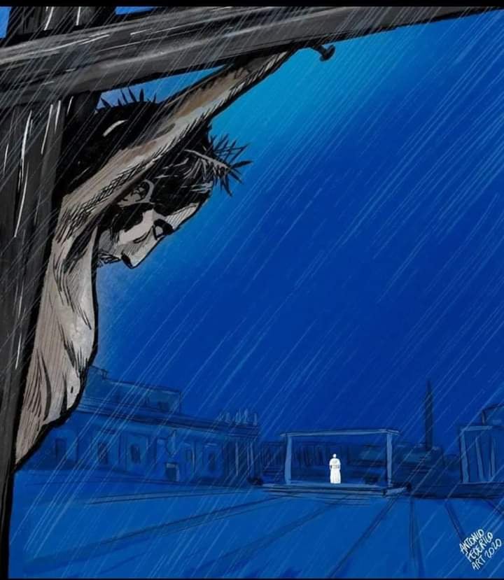 – Trời cao đã khóc như một lời đáp trả của Cha Nhân Từ với lời van xin thống thiết của người đứng đầu Dân Ngài là Đức Thánh Cha Phanxicô, và của hàng triệu tín hữu gần xa tham dự trực tuyến: “LẠY CHÚA, XIN HÃY THỨC DẬY”.